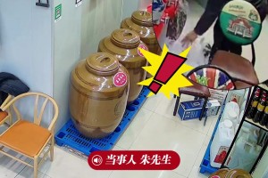 男子挪吧台碰倒酒坛损失120斤白酒:想扶扶不住,...